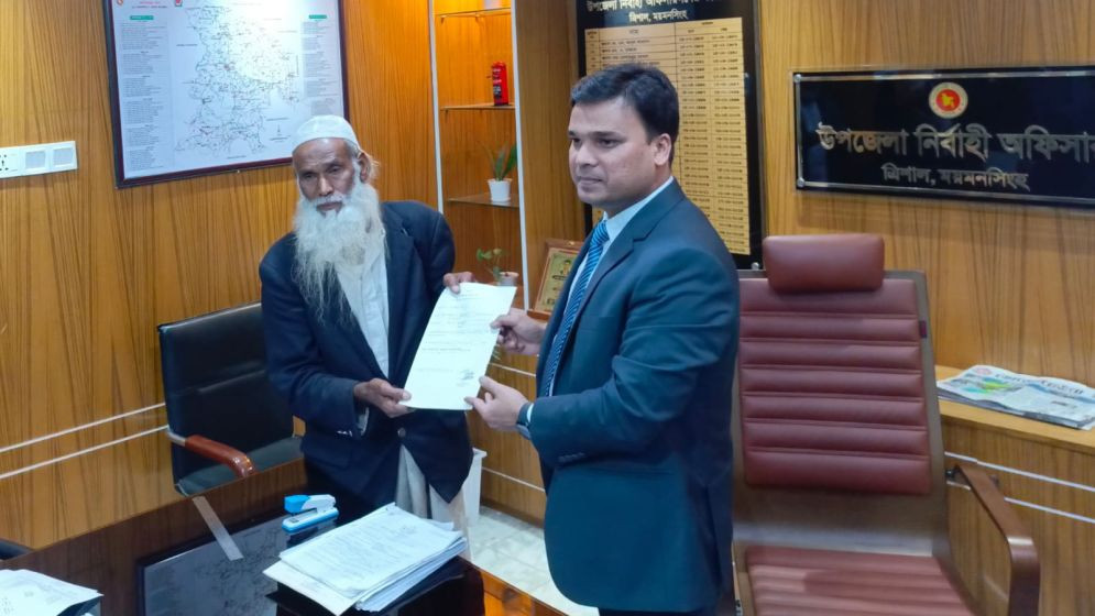 আগামী ত্রয়োদশ জাতীয় সংসদ নির্বাচনে ময়মনসিংহ-৭ আসনে ভিক্ষা করে টাকা জমিয়ে স্বতন্ত্র এমপি প্রার্থীর মনোনয়নপত্র ফরম ক্রয় করে আজ সোমবার সহকারী রিটার্নিং অফিসার ও উপজেলা নির্বাহী কর্মকর্তা মো. আরাফাত সিদ্দিকীর কার্যালয়ে জমা দিলেন ফকির আবুল মুনসুর।