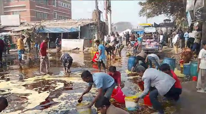 পাইপ ফেটে সড়কে ছড়িয়ে পড়ল ভোজ্যতেল