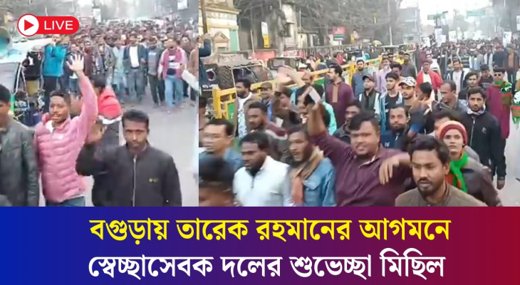 বগুড়ায় তারেক রহমানের আগমনে স্বেচ্ছাসেবক দলের শুভেচ্ছা মিছিল