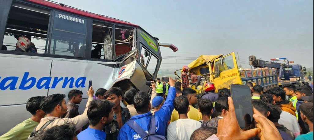 হেলপারের হাতে ট্রাক, বাসের সাথে মুখোমুখি সংঘর্ষে নিহত ২