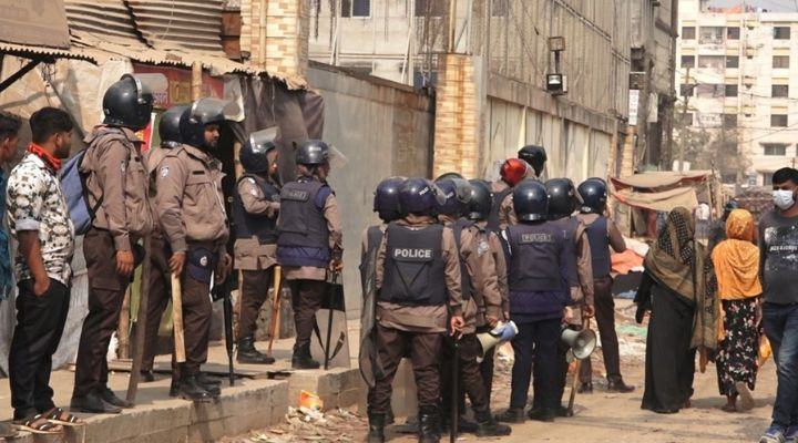 পুলিশ জানায়, সকালে শ্রমিকরা রাস্তা অবরোধ করে অবস্থান নেন। কোনো কিছু বুঝে উঠার আগেই শ্রমিকরা পুলিশের সঙ্গে শৃঙ্খলা আচরণ ও ইটপাটকেল ছুড়তে থাকে। পরে পুলিশ পরিস্থিতি নিয়ন্ত্রণের জন্য টিয়ারশেল ও সাউন্ড গ্রেনেড ব্যবহার করে শ্রমিকদের ছত্রভঙ্গ করে।