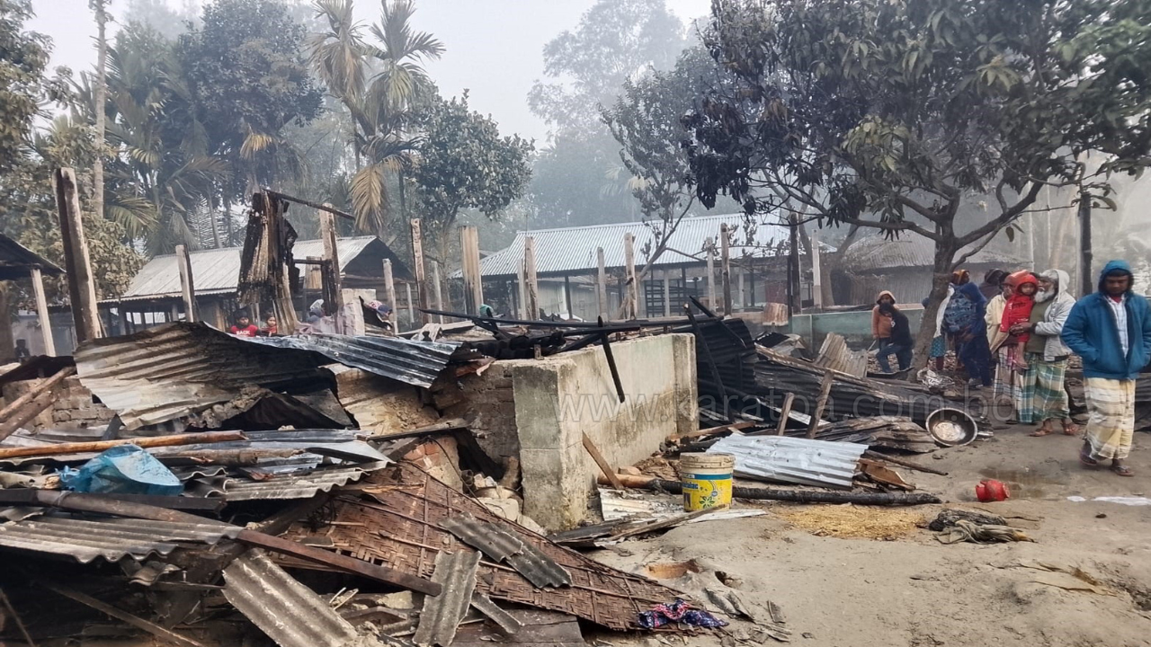 কুড়িগ্রামের রাজারহাটে আগুনে পাঁচ পরিবারের ১২ ঘর পুড়ে ছাই