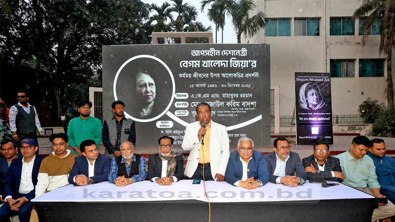 ব্যক্তিগত ও দলীয় স্বার্থের ঊর্ধ্বে ওঠে তিনি মানুষ দেশ ও জনগণের কল্যাণে কাজ করেছেন। একজন রাজনীতিবিদ হিসেবে তিনি অত্যন্ত সফল ও সার্থক।’ বগুড়া মিডিয়া অ্যান্ড কালচারাল সোসাইটির সাধারণ সম্পাদক সুজন মাহমুদের সভাপতিত্বে অনুষ্ঠানে প্রধান অতিথির বক্তব্য রাখেন বগুড়া জেলা বিএনপির সভাপতি রেজাউল করিম বাদশা। তিনি বলেন, এই প্রদর্শনী কেবল ছবির সমাহার নয়, বরং বাংলাদেশের গণতন্ত্র রক্ষার সংগ্রামের এক জীবন্ত দলিল।