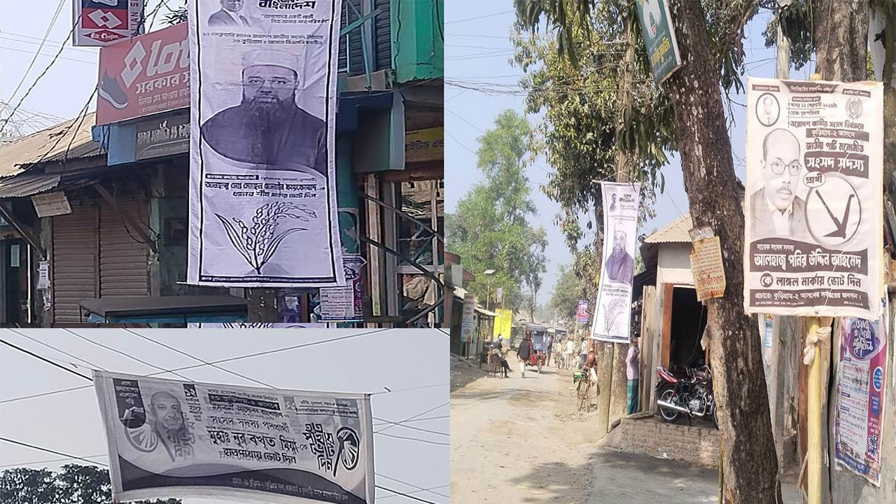 কুড়িগ্রামের রাজারহাটে পোস্টারবিহীন নির্বাচনি প্রচারে নেই ভোটের আমেজ