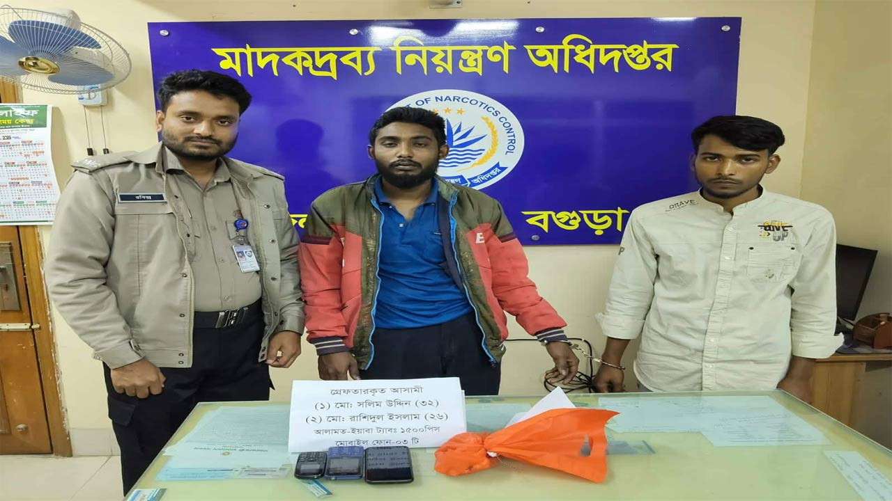মাদকদ্রব্য নিয়ন্ত্রণ অধিদপ্তর বগুড়ার উপপরিচালক মো: জিললুর রহমান বিষয়টি নিশ্চিত করে বলেন, গোপন সংবাদের ভিত্তিতে ওই বাস থামিয়ে ওই দুই যাত্রীর দেহ তল্লাশিকালে দেড় হাজার পিস ইয়াবা উদ্ধার করা হয়।