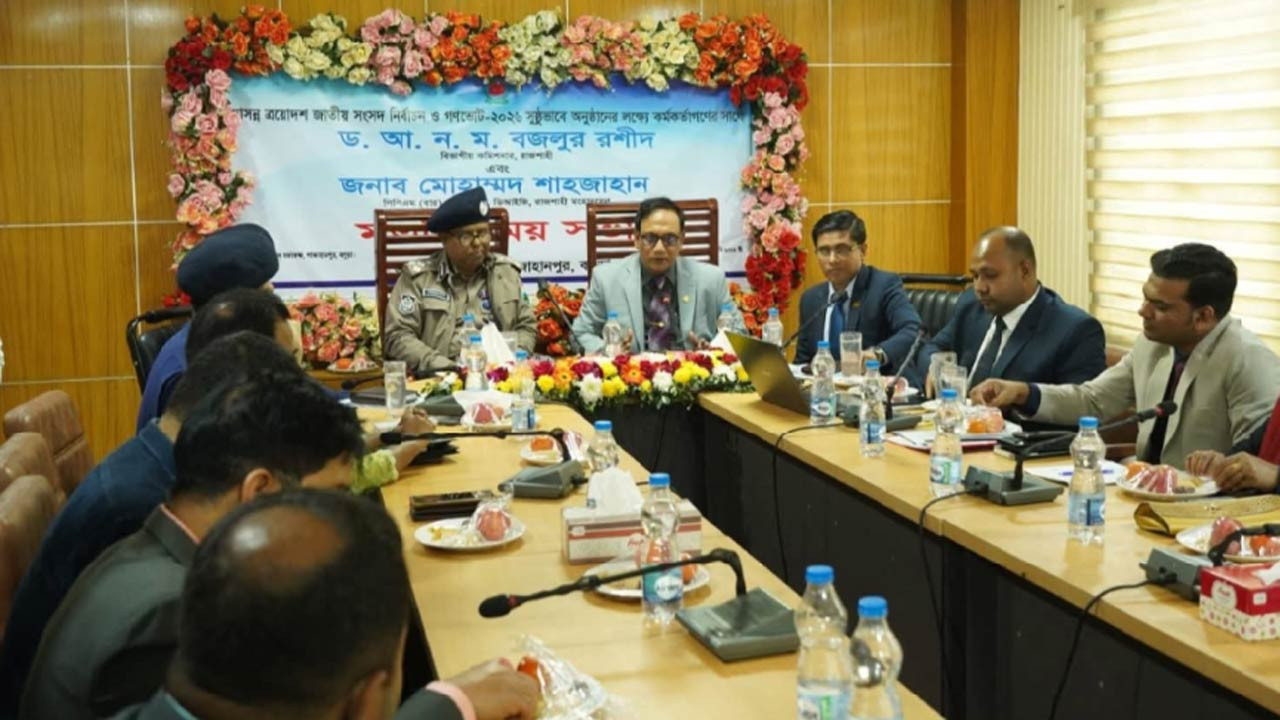 শাজাহানপুর (বগুড়া) প্রতিনিধি : আসন্ন ত্রয়োদশ জাতীয় সংসদ নির্বাচন ও গণভোট সুষ্ঠু, অবাধ ও শান্তিপূর্ণভাবে সম্পন্ন করার লক্ষ্যে বগুড়ার শাজাহানপুরে নির্বাচনী মতবিনিময় সভা অনুষ্ঠিত হয়েছে। আজ সোমবার (২ ফেব্রুয়ারি) বেলা ১২টায় উপজেলা সেমিনার কক্ষে উপজেলা প্রশাসনের আয়োজনে এ সভা অনুষ্ঠিত হয়।