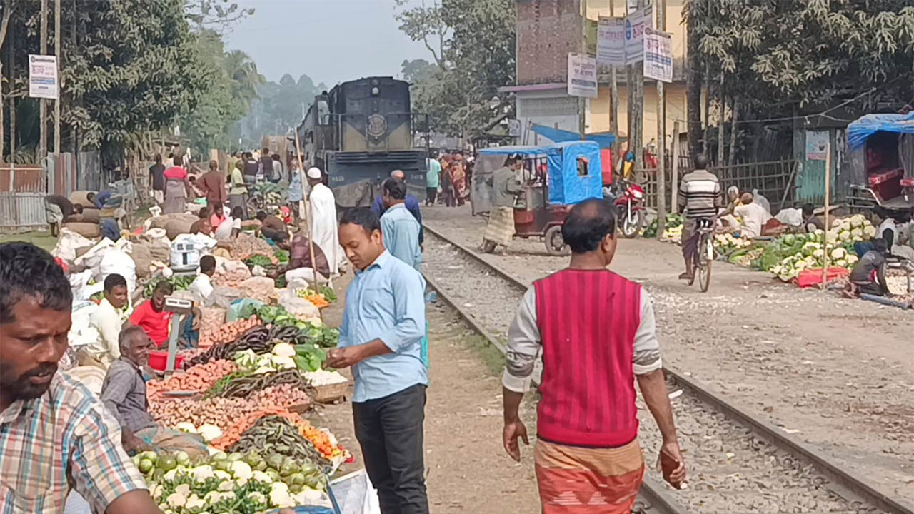 কুড়িগ্রামে রেললাইনের ওপর কাঁচাবাজার যেকোন সময় বড় ধরনের দুর্ঘটনা