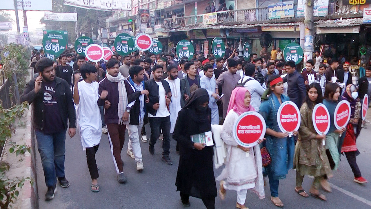 রংপুরে বৈষম্যবিরোধী ছাত্র আন্দোলনের গণভোট নিয়ে হ্যাঁ মার্চ
