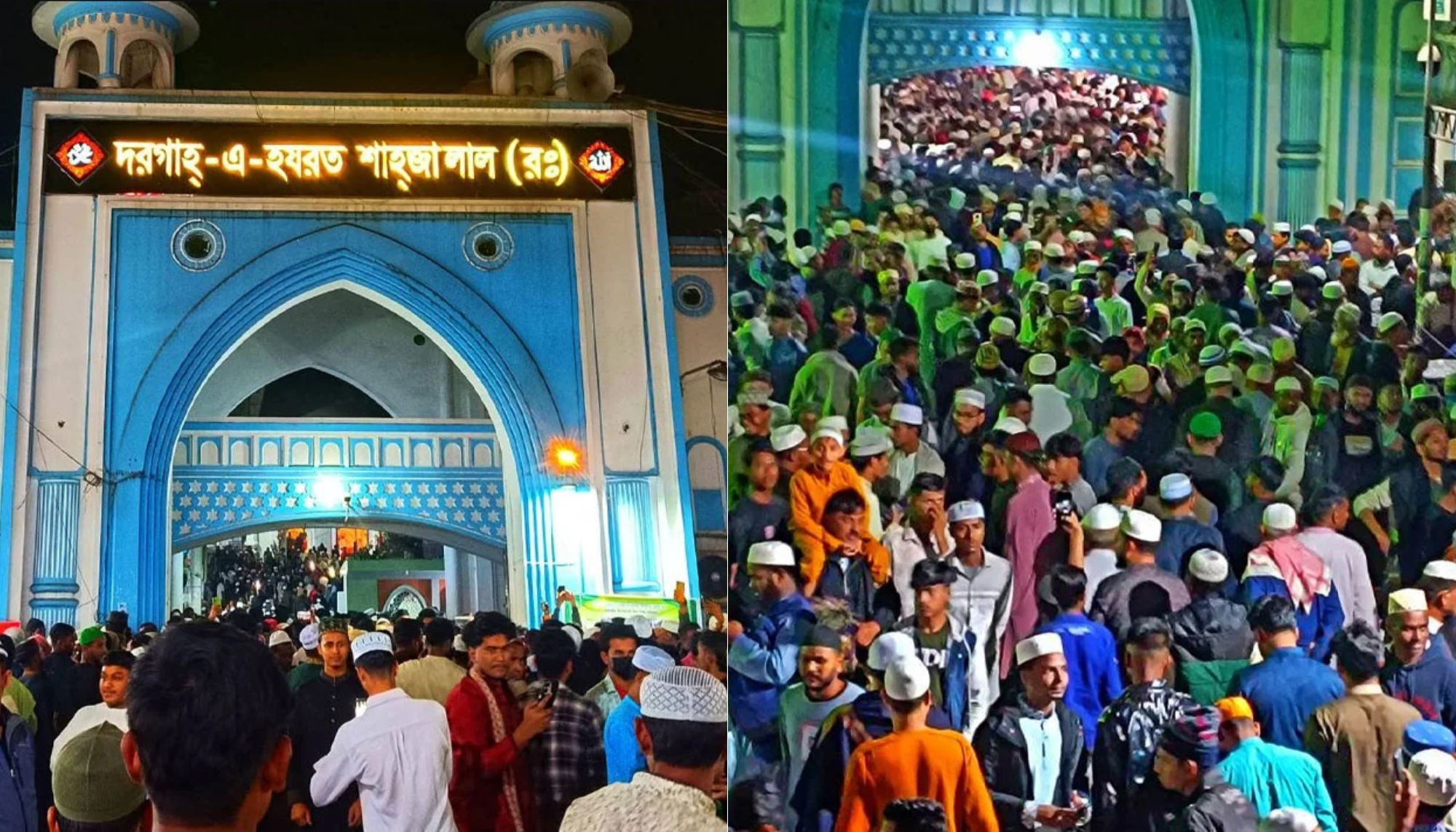 শবে বরাতের রাতে শাহজালাল ও শাহপরান (র.) মাজারে মুসল্লিদের ভিড়