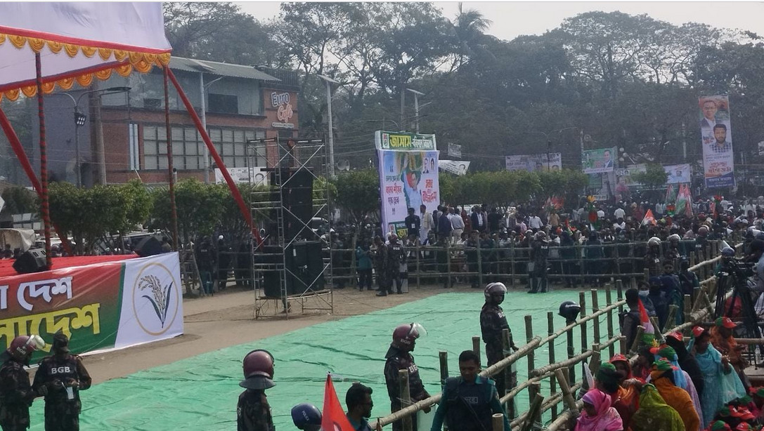 নেতাকর্মীরা জড়ো হচ্ছেন বেলসপার্ক ময়দানে