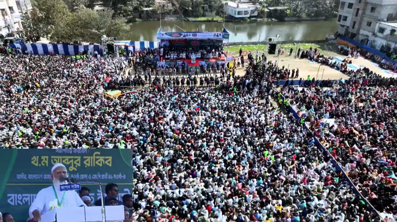 আরও পড়ুনজনসভায় নওগাঁর ৬টি আসনের প্রার্থীদের হাতে দাঁড়িপাল্লা তুলে দিয়ে ভোটারদের প্রতি ভোট দেওয়ার আহ্বান জানান জামায়াত আমির। সেই সঙ্গে গণভোটে ‘হ্যাঁ’ জয়যুক্ত করতে আহ্বান জানান তিনি।