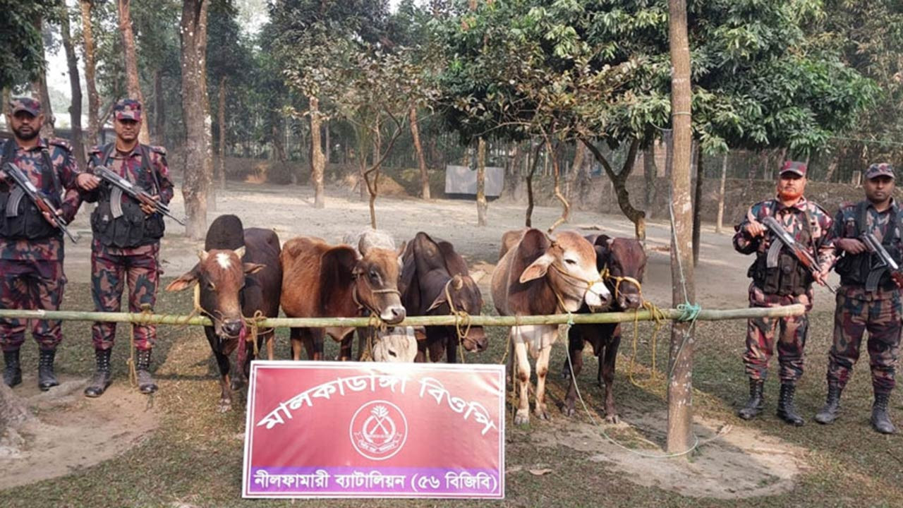 এ বিষয়ে নীলফামারী ৫৬-বিজিবি ব্যাটেলিয়নের অধিনায়ক লে. কর্নেল মো. সিরাজুল ইসলাম বিষয়টি নিশ্চিত করে বলেন, পার্শ্ববর্তী দেশে অবৈধভাবে গরুসহ বিভিন্ন পণ্য পাচার রোধে বিজিবি কঠোর অবস্থানে রয়েছে। মাদক ও অন্যান্য চোরাচালান বন্ধে নিয়মিত নজরদারি ও অভিযান অব্যাহত থাকবে।