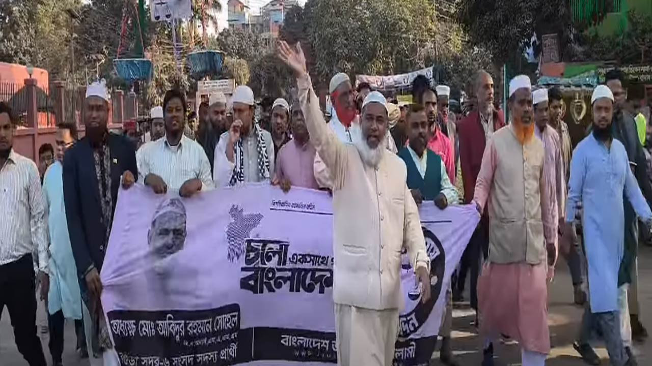 বগুড়া-৬ আসনে দাঁড়িপাল্লায় ভোট চেয়ে জামায়াতের প্রচার মিছিল