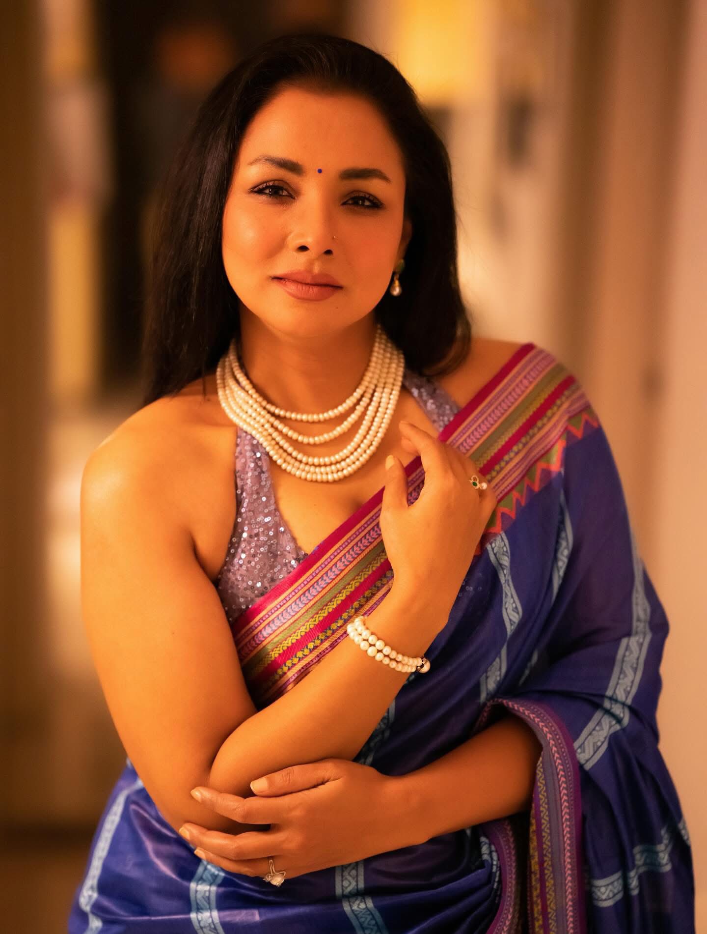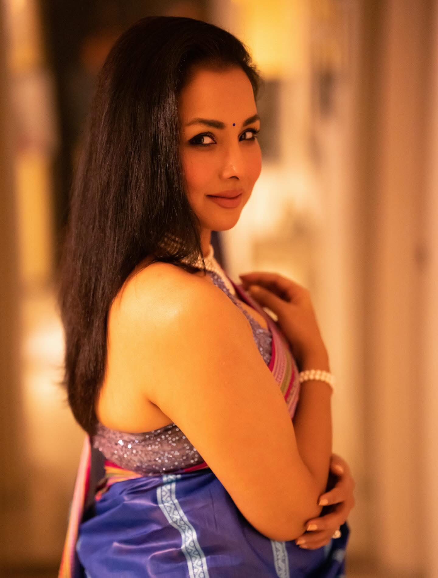 ছবিতে রুনা খানকে দেখা গেছে অত্যন্ত আধুনিক ও আভিজাত্যপূর্ণ লুকে। পরেছেন নীল ও বেগুনি রঙের একটি জমকালো শাড়ি, ম্যাচিং স্লিভলেস সিকুইন ব্লাউজ; যা তাকে দিয়েছে এক অনন্য মাত্রা।