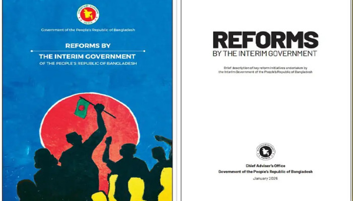 বইটিতে বলা হয়েছে, ‘২০২৪ সালের ৫ আগস্ট কর্তৃত্ববাদী শাসনের বিরুদ্ধে গণ-আন্দোলনের মধ্য দিয়ে শেখ হাসিনার দীর্ঘ শাসনের অবসান ঘটে এবং দেশ গভীর অর্থনৈতিক, প্রাতিষ্ঠানিক ও গণতান্ত্রিক সংকট নিয়ে নতুন যাত্রা শুরু করে। ওই প্রেক্ষাপটে দায়িত্ব নেওয়া অন্তর্বর্তী সরকার রাষ্ট্র সংস্কারে ব্যাপক উদ্যোগ গ্রহণ করে।’