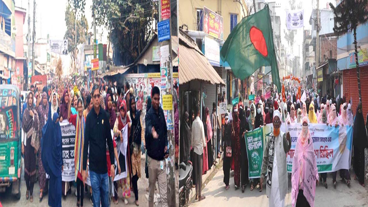 আজ সোমবার (৯ ফেব্রুয়ারি) দুপুরে জামায়াত এবং বিকেলে বিএনপি এই মহিলা সমাবেশ করে। সমাবেশ শেষে উভয় দল মিছিল নিয়ে উপজেলার প্রধার প্রধান সড়ক প্রদক্ষিণ করে।