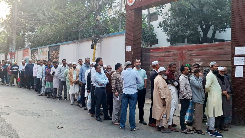 ত্রয়োদশ জাতীয় সংসদ নির্বাচন ও গণভোট চলছে। বৃহস্পতিবার (১২ ফেব্রুয়ারি) সকাল সাড়ে ৭টায় সারাদেশে ভোটগ্রহণ শুরু হয়েছে, যা বিকেল সাড়ে ৪টা পর্যন্ত চলবে। এর মধ্যে ভোট দিতে কেন্দ্রের সামনে জড়ো হচ্ছেন মানুষ। তার মধ্যে অনেকে কেন্দ্রে নির্ধারিত সময়ের আগেই ভোটাররা কেন্দ্রে হাজির হন। কোথাও কোথাও ভোটারের লাইন দীর্ঘ হতে দেখা গেছে।