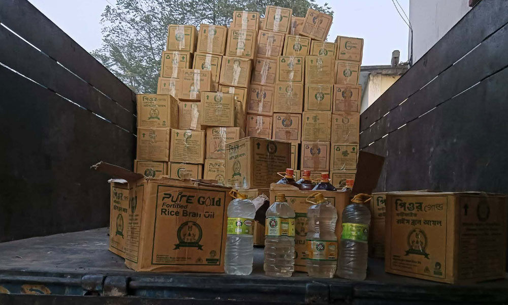 পঞ্চগড়ের বোদায় টিসিবির তেলের কার্টনে পানির বোতল