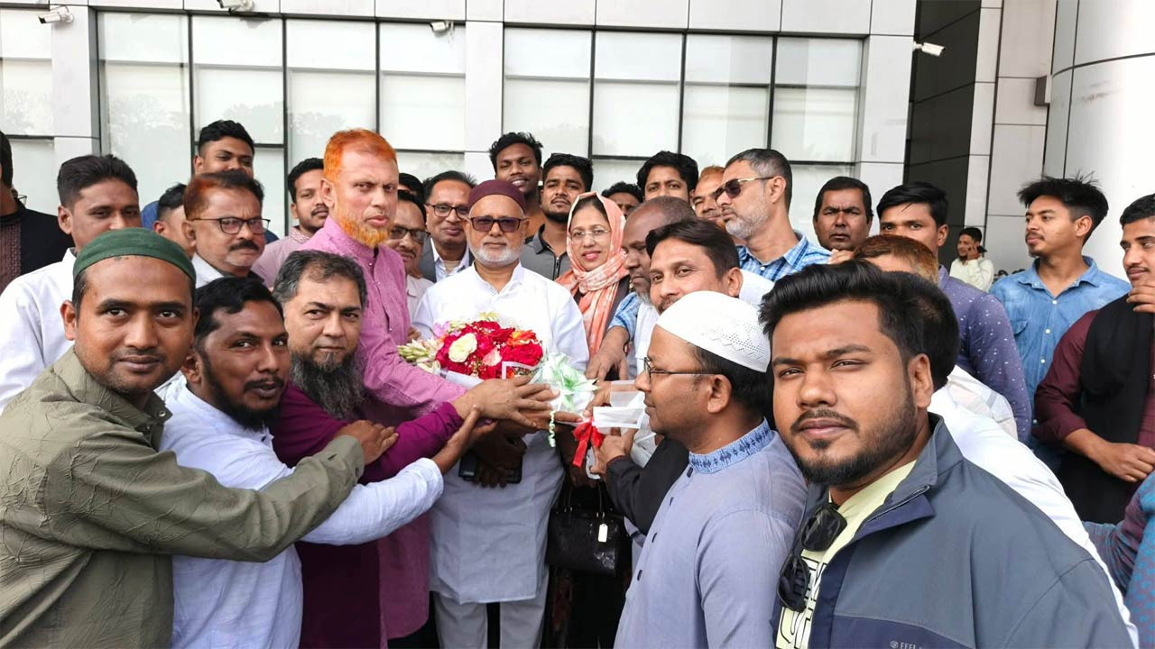 বিমানবন্দরে নেতাকর্মীদের ভালোবাসায় সিক্ত হলেন এমপি মনজুরুল