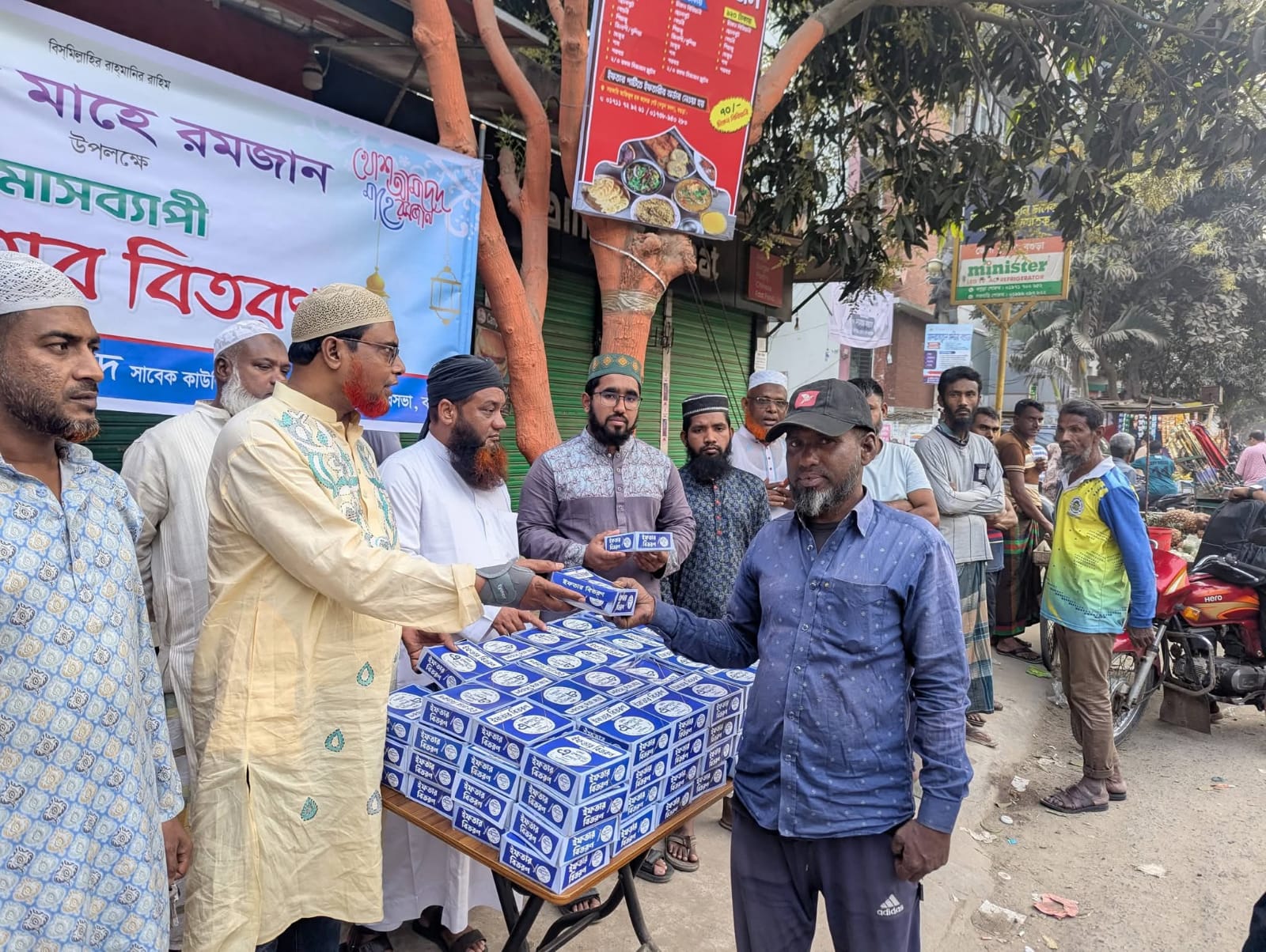 আরও পড়ুনবৃহস্পতিবার বিকাল তিনটায় শহরের উপকন্ঠ জামিলনগরে মুক্তিযোদ্ধা টেকনিক্যাল স্কুল কলেজের মাঠে তোহফায়ে রমজান বিতরণ অনুষ্ঠানে আরও উপস্থিত ছিলেন গ্রীণল্যান্ড হাউজিং জামে মসজিদের ইমাম মওলানা শাহ জামাল, বগুড়া জেলা লেদ শ্রমিক ইউনিয়নের সভাপতি আলিফ মাহমুদ, শ্রমিক কল্যাণ ফেডারেশন ৮ নং ওয়ার্ডের সহ-সভাপতি রিয়াজ আহমেদ, সাংগঠনিক সম্পাদক বুলবুল আহমদ, বিশিষ্ট ব্যবসায়ী সাদ্দাম হোসনে সহ আরও অনেকে । অনুষ্ঠানটি সঞ্চালনা করেন ৮ নং ওয়ার্ড জামায়াতের সহ-সভাপতি ডা: মুনসুর রহমান ।