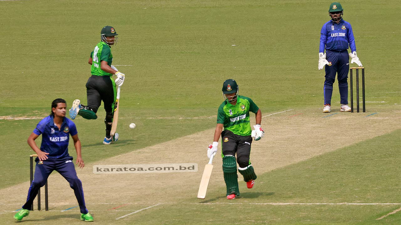 আগে ব্যাট করে আকবর আলীর দুর্দান্ত সেঞ্চুরির পর রিশাদ হোসেনের ঘুর্ণিতে কাবু ইস্ট জোন। নর্থ জোনের গড়া ৩৩৫ রানের জবাবে ইস্ট জোন ২ বল বাকি থাকতে অলআউট হয়েছে ২৮১ রানে। বিজয়ী দলের আকবর আলী প্লেয়ার অব দ্য ম্যাচ নির্বাচিত হন।