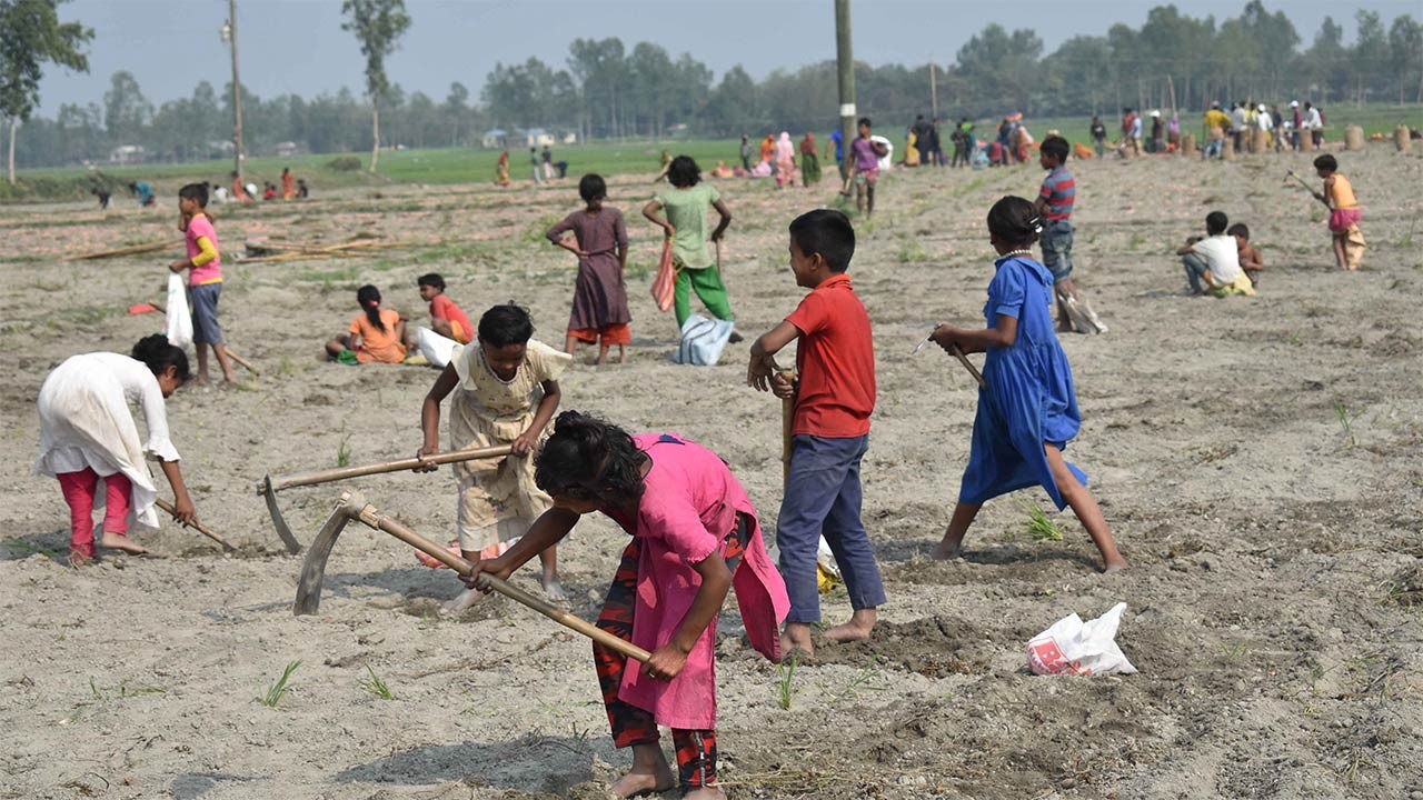 রংপুরের তারাগঞ্জে মাঠে মাঠে চলছে শিশু-কিশোরের আলু তোলার ধুম