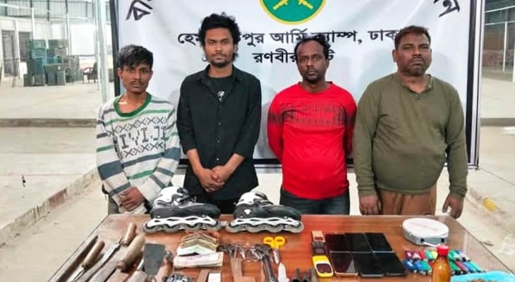 সাভারে সেনা অভিযানে অস্ত্রসহ ৪ ছিনতাইকারী আটক