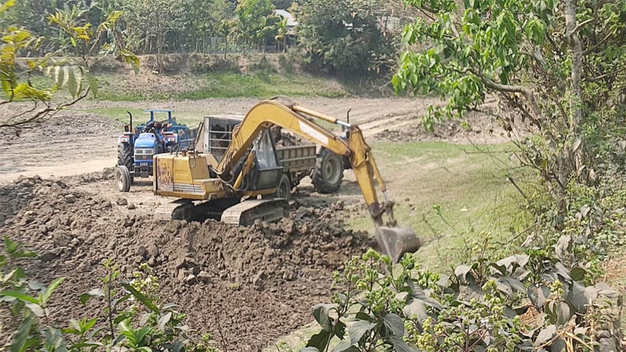 বগুড়ার ধুনটে পুকুর খননের নামে অবৈধভাবে মাটি বাণিজ্য, ঝুঁকিতে পাকাসড়ক!