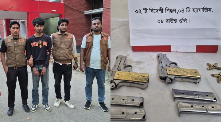 কুষ্টিয়া থেকে চুক্তিতে অস্ত্র পাচারকালে বিদেশি পিস্তল-গুলিসহ যুবক আটক