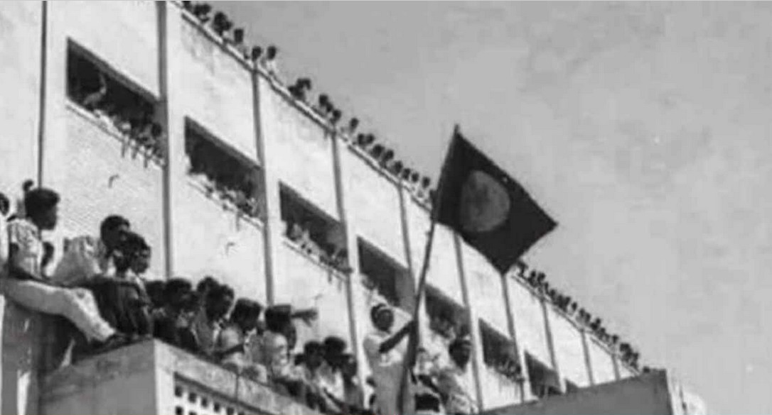 এদিন ঢাকা বিশ্ববিদ্যালয়ের বটতলায় প্রথম উত্তোলন করা হয় লাল-সবুজ পতাকা