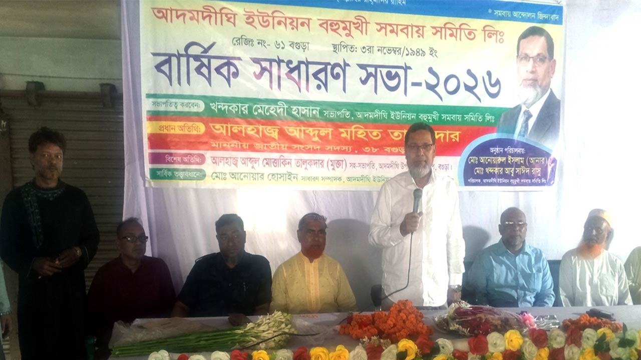 তিনি আজ সোমবার (১৬ মার্চ) সকালে বগুড়ার আদমদীঘি ইউনিয়ন বহুমুখী সমবায় সমিতি লি. এর বার্ষিক সাধারণ সভায় প্রধান অতিথির বক্তব্যে এ কথাগুলো বলেন। সমিতির সভাপতি খন্দকার মেহেদী হাসানের সভাপতিত্বে ও সমিতির পরিচালক আনোয়ারুল ইসলাম আনারের সঞ্চালনায় সভায় বিশেষ অতিথির বক্তব্য রাখেন উপজেলা বিএনপির সহসভাপতি আব্দুল মোত্তাকিন তালুকদার মুক্তা।