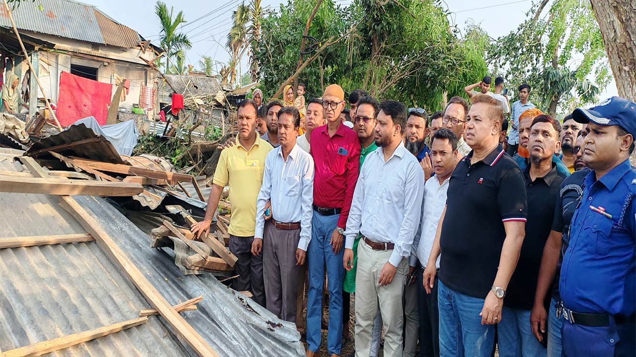 বগুড়ার গাবতলীতে ঘূর্ণিঝড়ে লন্ডভন্ড এলাকা পরিদর্শনে এমপি মিলটন