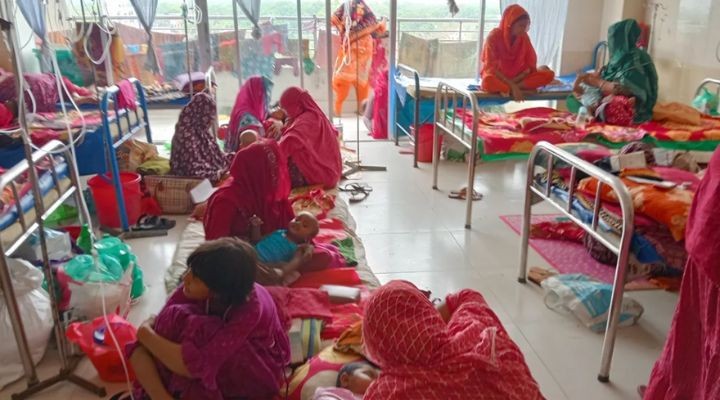 অন্যদিকে, ঝিনাইদহ শিশু হাসপাতালেও একই চিত্র দেখা যাচ্ছে। হাসপাতালটির কনসালট্যান্ট ডা. আলি হাসান ফরিদ জানান, সেখানে ২৫টি বেড থাকলেও ৭০ থেকে ৭৫ জন রোগী ভর্তি থাকছে। অতিরিক্ত রোগীদের মেঝেতে রেখে চিকিৎসা দেওয়া হচ্ছে। এছাড়া হাম আক্রান্ত কয়েকজন শিশুকেও চিকিৎসা দেওয়া হয়েছে।