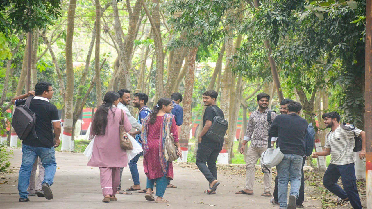 শিক্ষার্থীদের পদচারণায় মুখরিত দৃষ্টিনন্দন বেগম রোকেয়া বিশ্ববিদ্যালয় ক্যাম্পাস