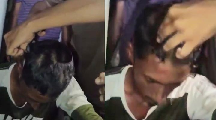 মাদক বিক্রির অভিযোগে যুবকের চুল কেটে দিল এলাকাবাসী