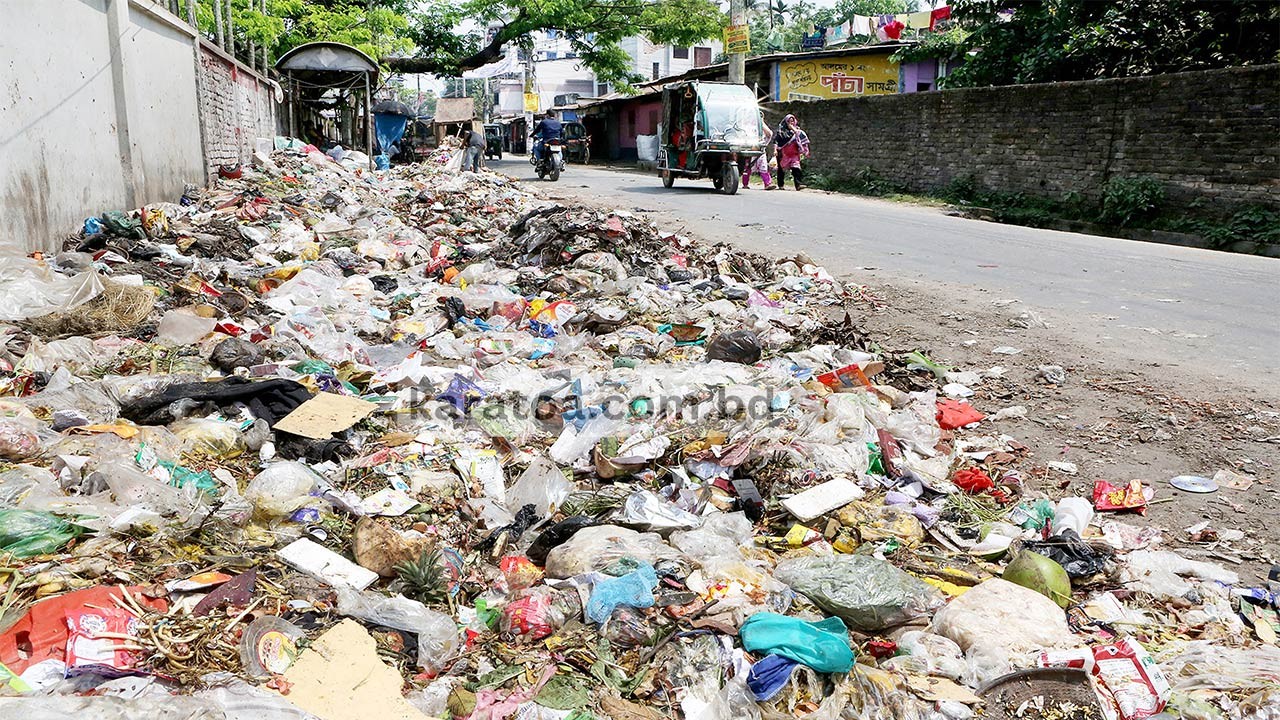 ময়লা-আবর্জনার দখলে নারুলী কৃষি ফার্মসংলগ্ন বগুড়া-চন্দনবাইশা সড়ক