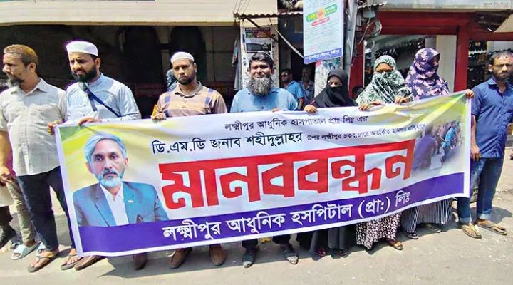 মানববন্ধনে বাংলাদেশ প্রাইভেট হসপিটাল ক্লিনিক অ্যান্ড ডায়াগনস্টিক ওনার্স অ্যাসোসিয়েশন (বিপিএইচসিডিওএ), লক্ষ্মীপুর আধুনিক হসপিটাল ও সাধারণ ব্যবসায়ীদের ব্যানার নিয়েও অনেকেই অংশগ্রহণ করেন।
