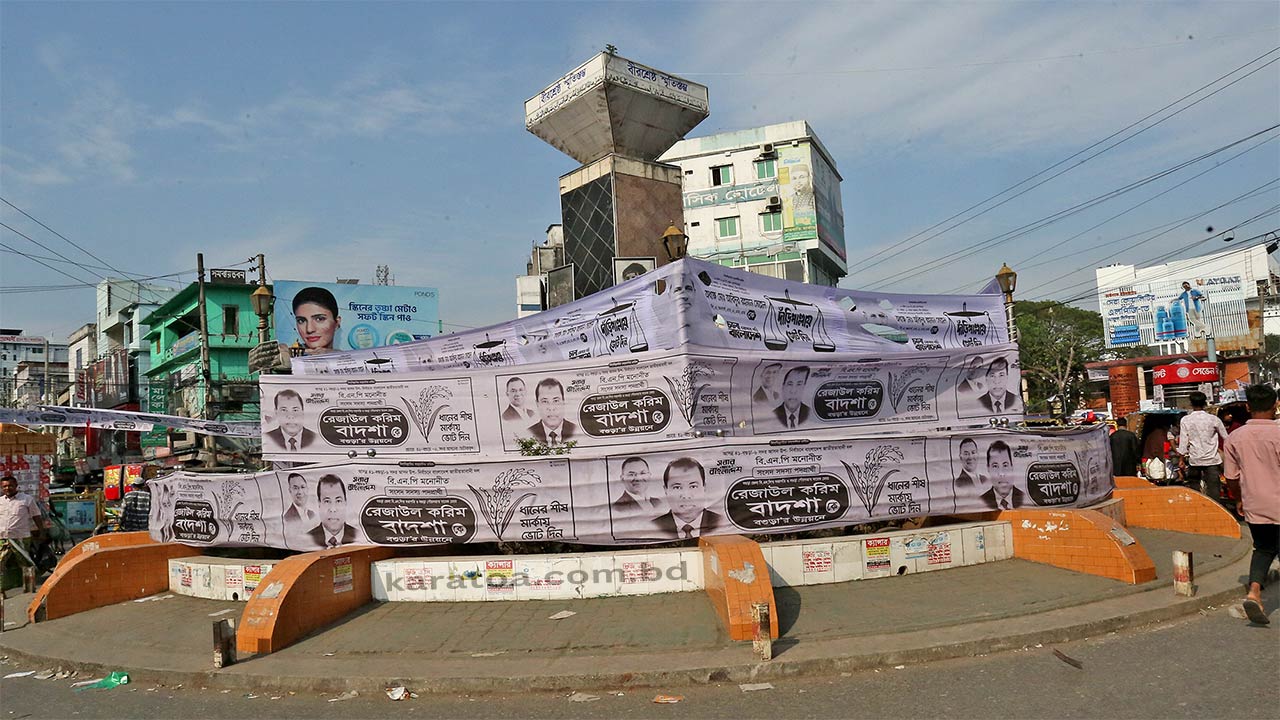 স্টাফ রিপোর্টার : বগুড়া-৬ (সদর) আসনের নির্বাচনি প্রচারণার ডামাডোলে মাদকসেবীদের আস্তানায় পরিণত হয়েছে শহরের সাতমাথার ‘বীরশ্রেষ্ঠ স্কয়ার’। নির্বাচনে প্রতিদ্বন্দ্বী দুই প্রার্থীর ব্যানার ও প্যানায় গোল চত্বরটি কয়েক স্তরে এমনভাবে ঢেকে ফেলা হয়েছে, যাতে মাদকসেবী ও অপরাধীদের অভয়ারণ্যে পরিণত হয়েছে। ভিতরের গোল চত্বরটি সম্পূর্ণ লোকচক্ষুর আড়ালে চলে যাওয়ায়, রাতের সাথে দিনের বেলাতেও চলছে বিভিন্ন ধরনের অপরাধমূলক কর্মকান্ড।