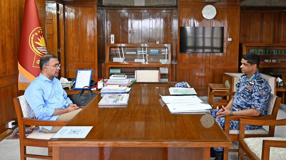 প্রধানমন্ত্রী তারেক রহমানের সঙ্গে সৌজন্য সাক্ষাৎ করেছেন বিমান বাহিনীর প্রধান এয়ার চিফ মার্শাল হাসান মাহমুদ খাঁন।