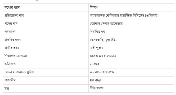 আবেদনের নিয়ম: আগ্রহী প্রার্থীরা আবেদন করতে ও বিস্তারিত বিজ্ঞপ্তিটি দেখতে এখানে ক্লিক করুন অ্যাডভান্সড কেমিক্যাল ইন্ডাস্ট্রিজ লিমিটেড (এসিআই)।
