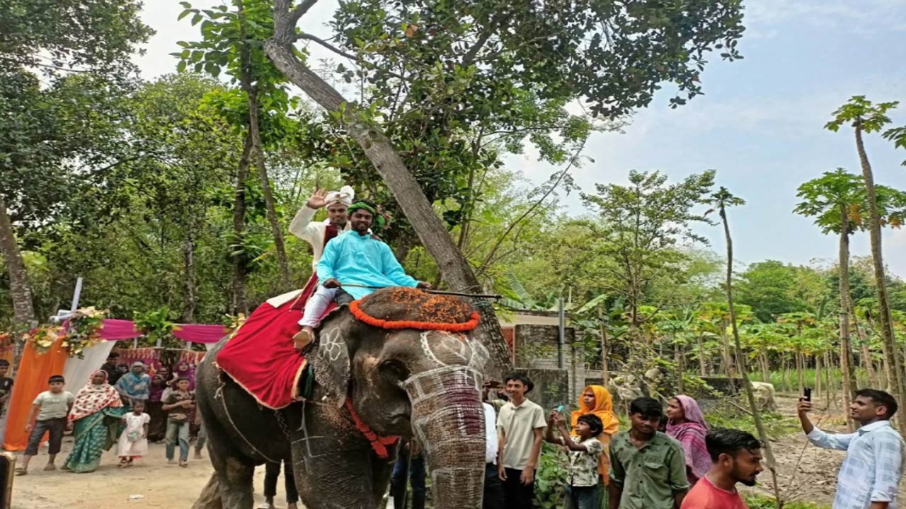 হাতির পিঠে চড়ে যুবকের বরযাত্রা কনে এলো ঘোড়ার গাড়িতে