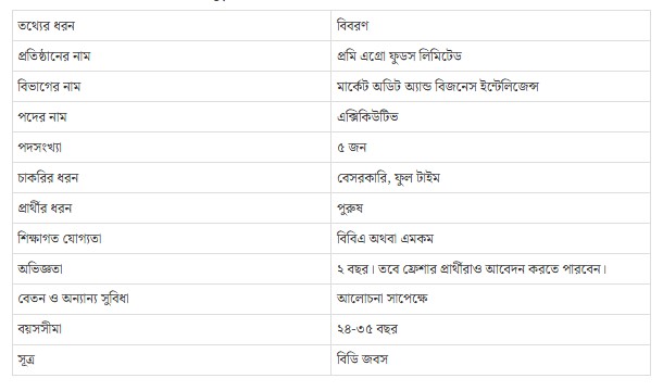 আবেদনের নিয়ম: আগ্রহী প্রার্থীরা আবেদন করতে ও বিস্তারিত বিজ্ঞপ্তিটি দেখতে এখানে ক্লিক করুন প্রমি এগ্রো ফুডস লিমিটেড।