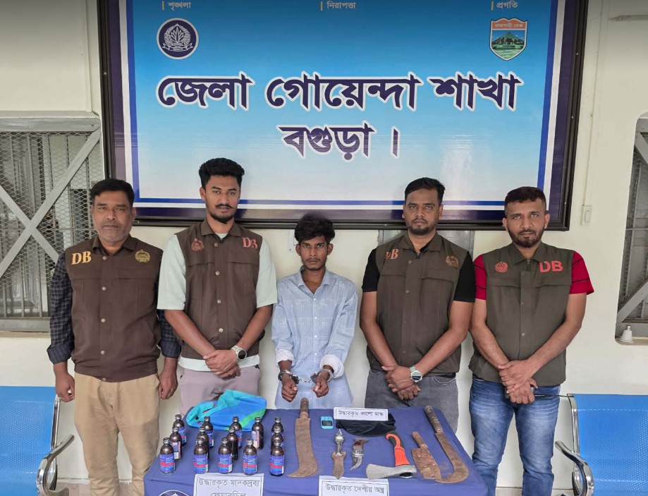 বগুড়ায় মাদক ও দেশিয় অস্ত্রসহ যুবক গ্রেফতার