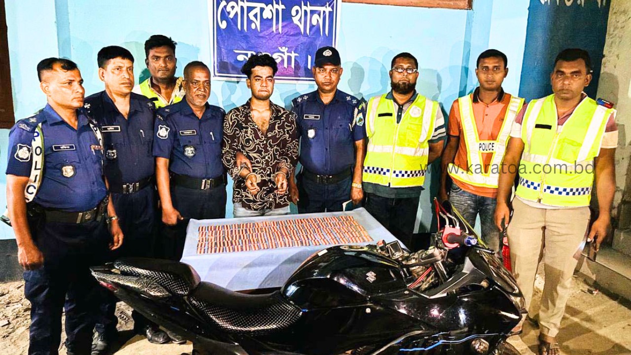নওগাঁর পোরশায় এক হাজার পিস ট্যাপেন্ডাডলসহ মাদককারবারি গ্রেফতার, ছবি: দৈনিক করতোয়া ।