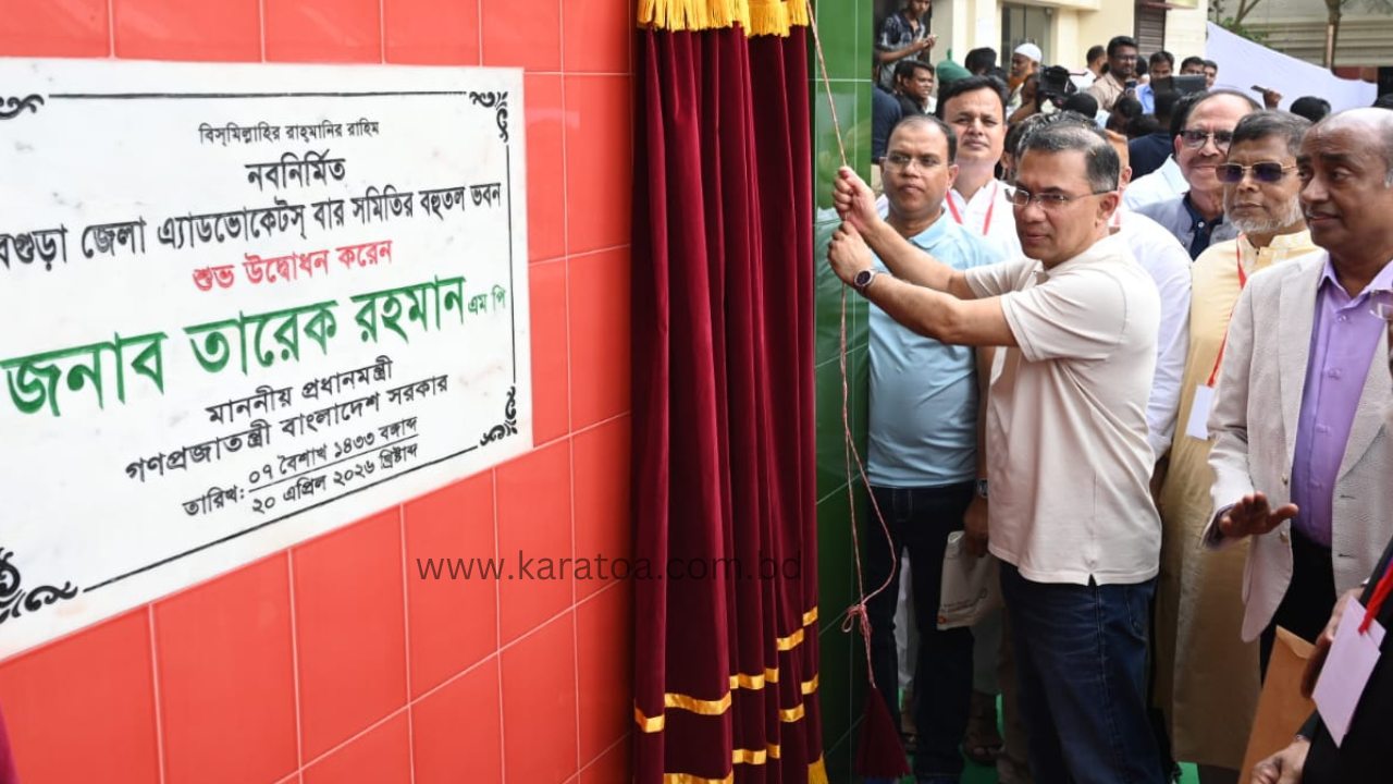 বগুড়া সফরে দিনের প্রথম কর্মসূচি হিসেবে প্রধানমন্ত্রী তারেক রহমান বগুড়া আইনজীবী সমিতির নবনির্বাচিত ভবন উদ্বোধন করেছেন। এসময় আইনমন্ত্রী মো. আসাদুজ্জামান এমপি, স্থানীয় সরকার, পল্লী উন্নয়ন ও সমবায় মন্ত্রণালয়ের প্রতিমন্ত্রী মীর শাহে আলম এমপি, বগুড়া জেলা বিএনপি’র সভাপতি রেজাউল করিম বাদশা এমপি ও ভারপ্রাপ্ত সাধারণ সম্পাদক মোশাররফ হোসেন এমপিসহ বগুড়ার পাঁচ আসনের সংসদ সদস্যগণ উপস্থিত ছিলেন। নতুন ভবনের ফলক উন্মোচনের পর প্রধানমন্ত্রী তারেক রহমান দোয়া মোনাজাতে অংশ নেন এবং পরে তিনি সেখানে সংক্ষিপ্ত বক্তব্য রাখেন।