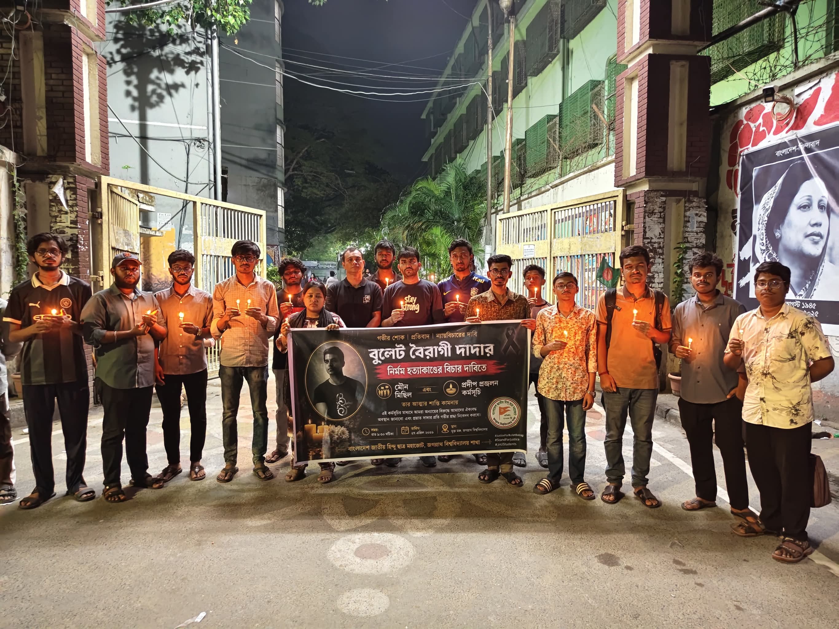বুলেট হত্যার বিচার দাবিতে জবি শাখা বাংলাদেশ জাতীয় হিন্দু ছাত্র মহাজোটের মৌন মিছিল