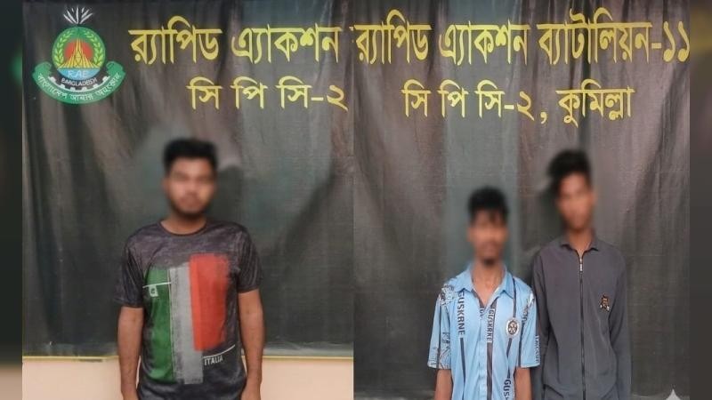 কুমিল্লায় ছিনতাইয়ের প্রস্তুতির সময় দেশীয় অস্ত্রসহ তিনজনকে গ্রেপ্তার করেছে র্যাব-১১ সিপিসি-২ এর দল।
