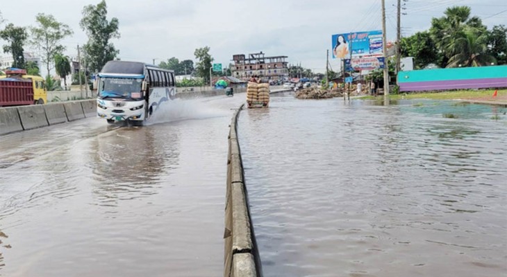 বগুড়ার শেরপুরে টানা বৃষ্টিতে মহাসড়ক ও বসতবাড়িতে হাটু পানি