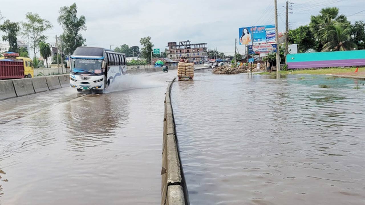 বগুড়ার শেরপুরে টানা বৃষ্টিতে মহাসড়ক ও বসতবাড়িতে হাটু পানি