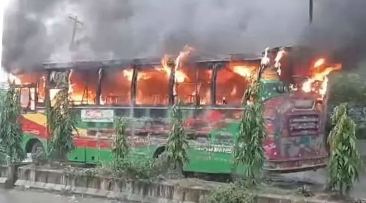নারায়ণগঞ্জে সড়ক দুর্ঘটনায় পথচারী নিহত, বাসে আগুন